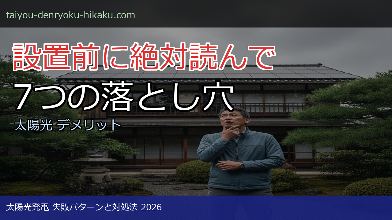 太陽光発電のデメリットを正直に解説します。デメリットを事前に把握し、対処法を準備することで失敗リスクを最小化できます。